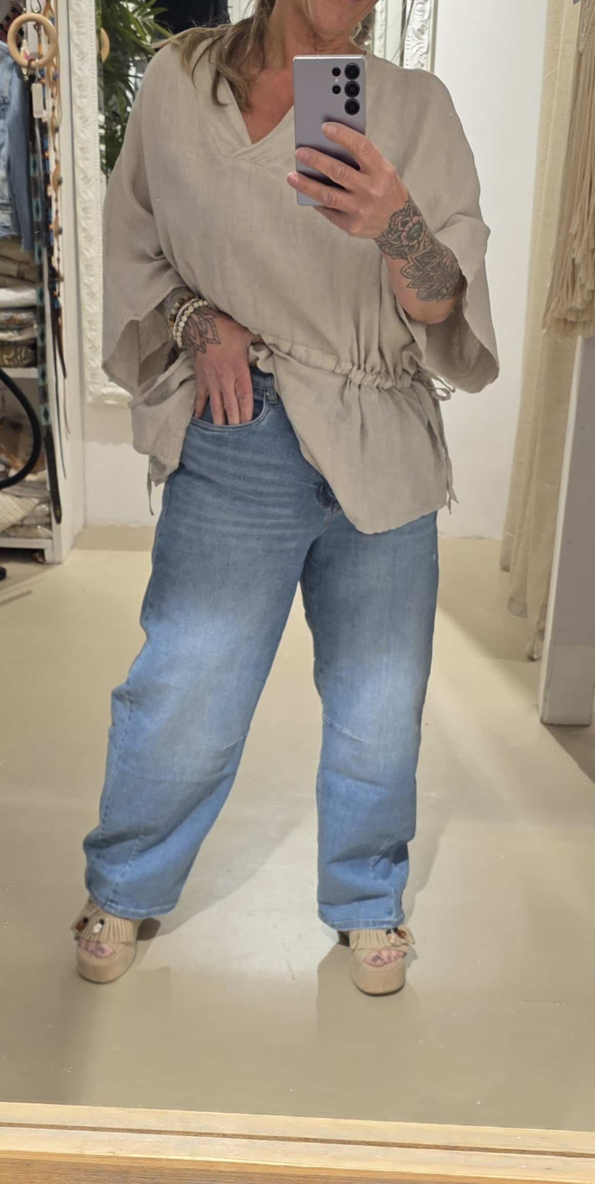 Heerlijke strech jeans met goeie stonewash, de broek heeft een ritssluiting, mooie beschaafde Barrel snit.
