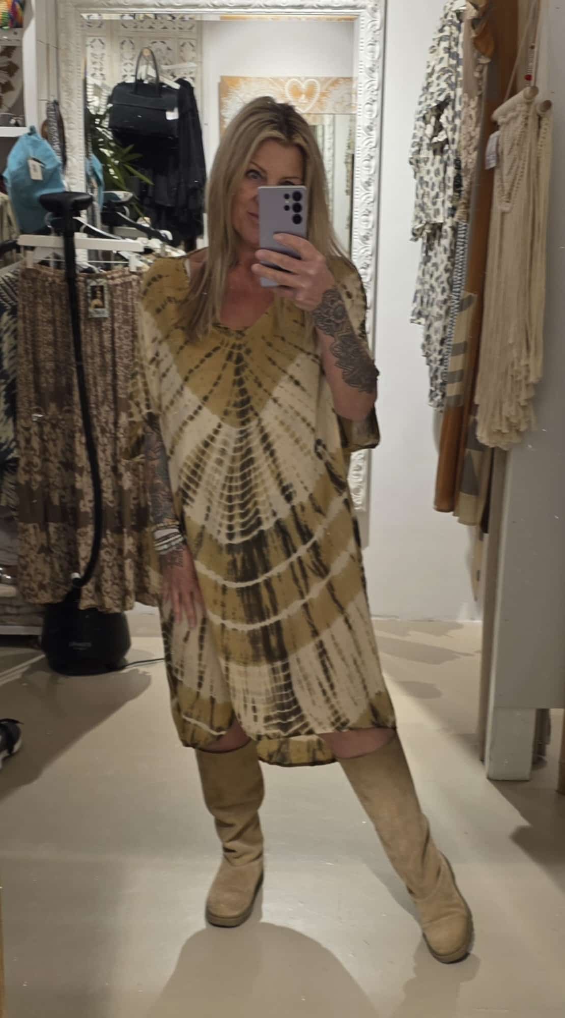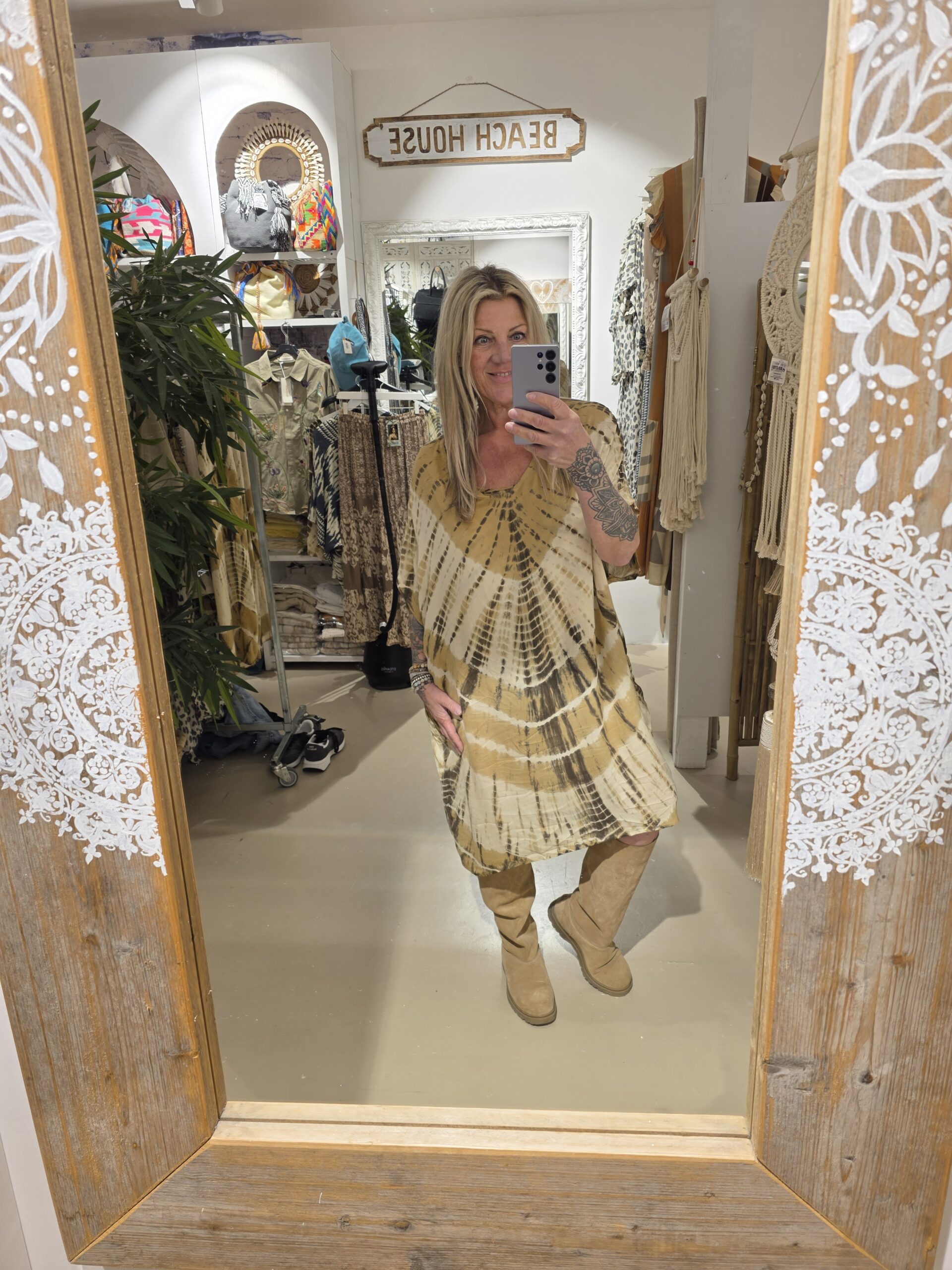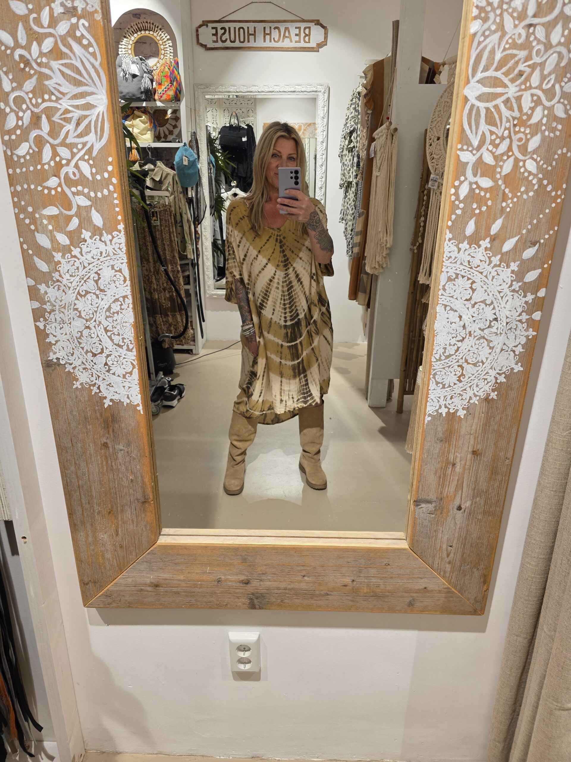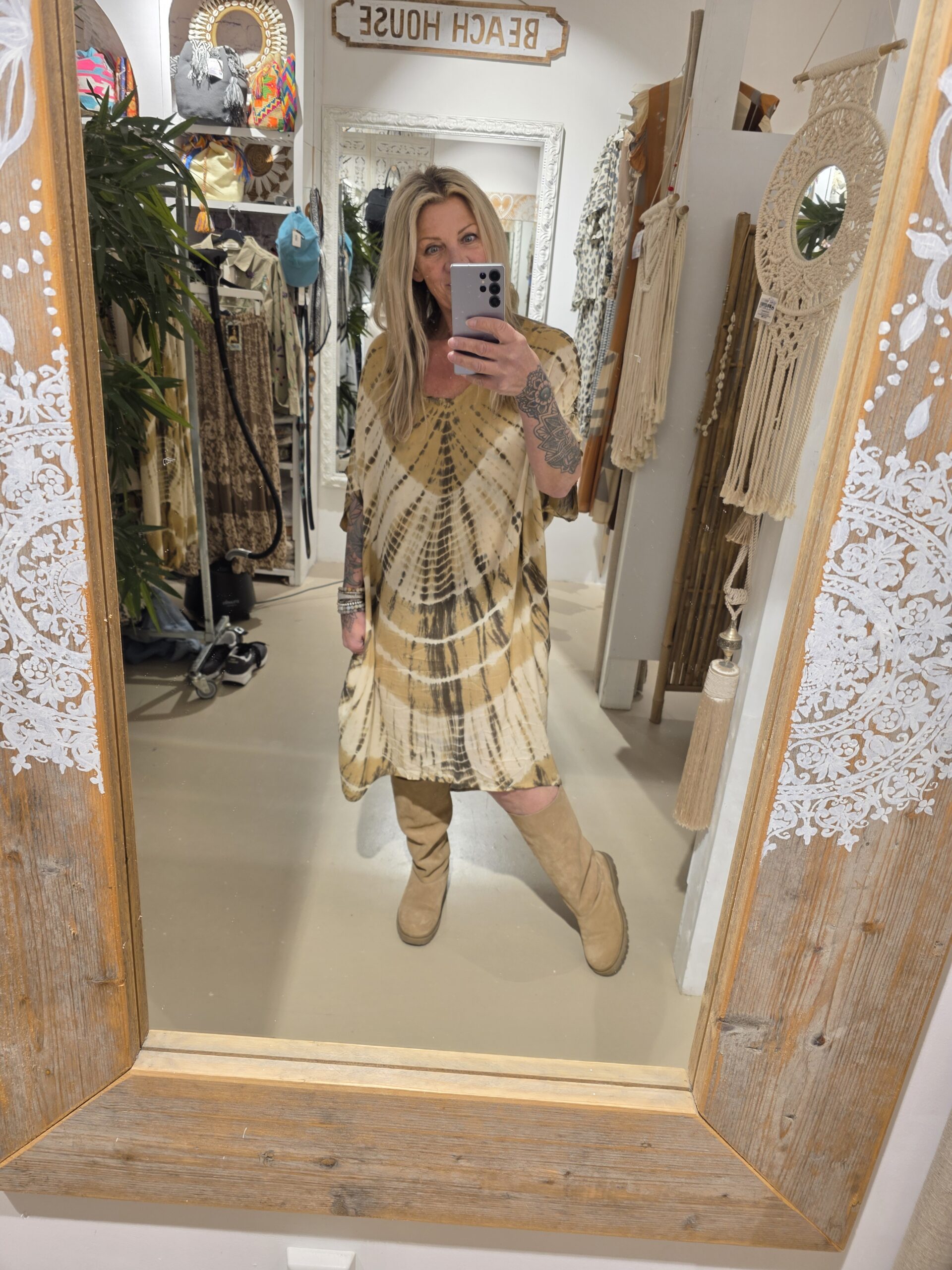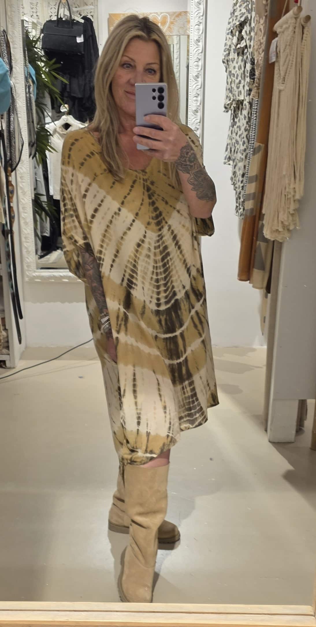 Dit is de tuniek in één maat, valt lekker ruim, heeft zakken in een super leuke print