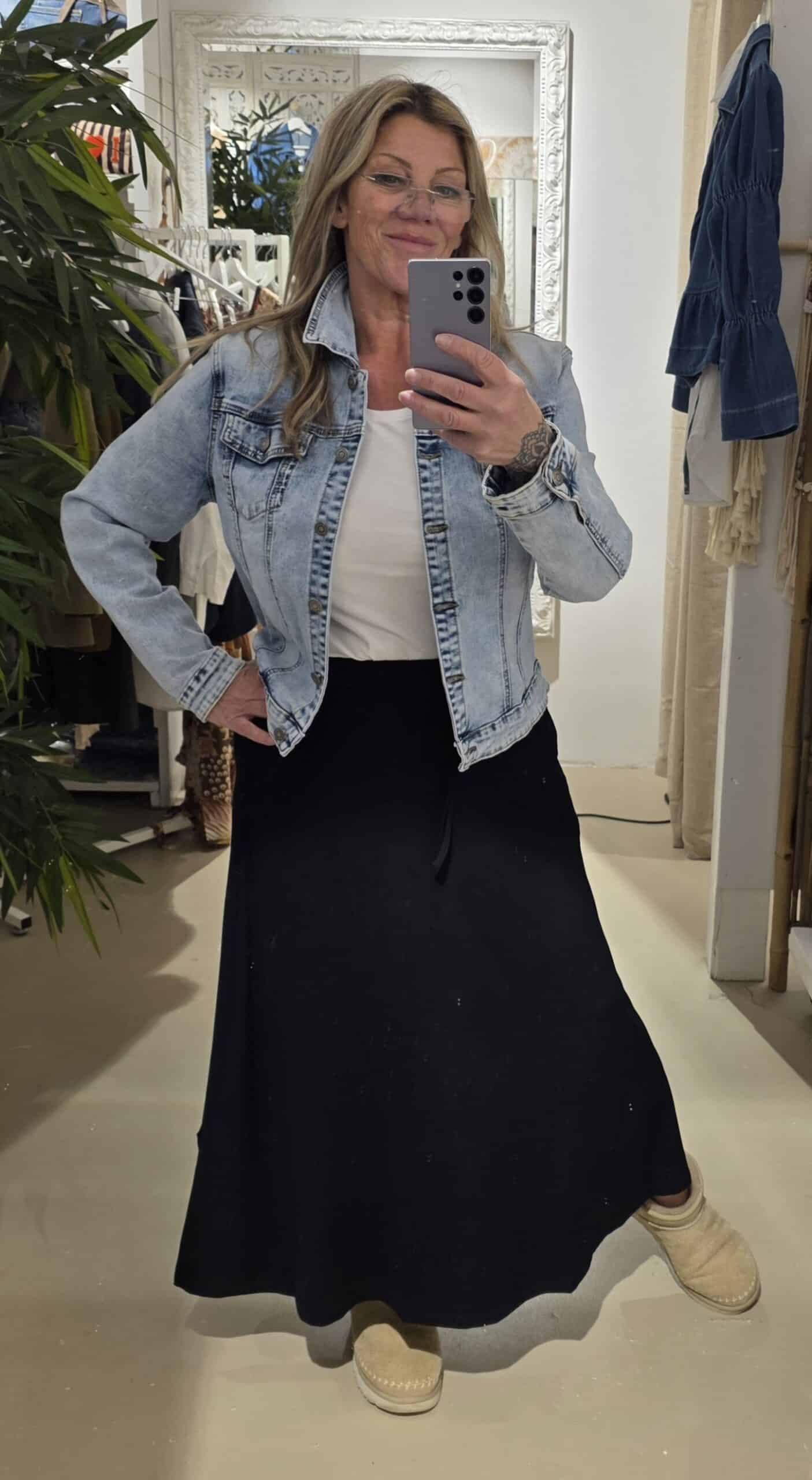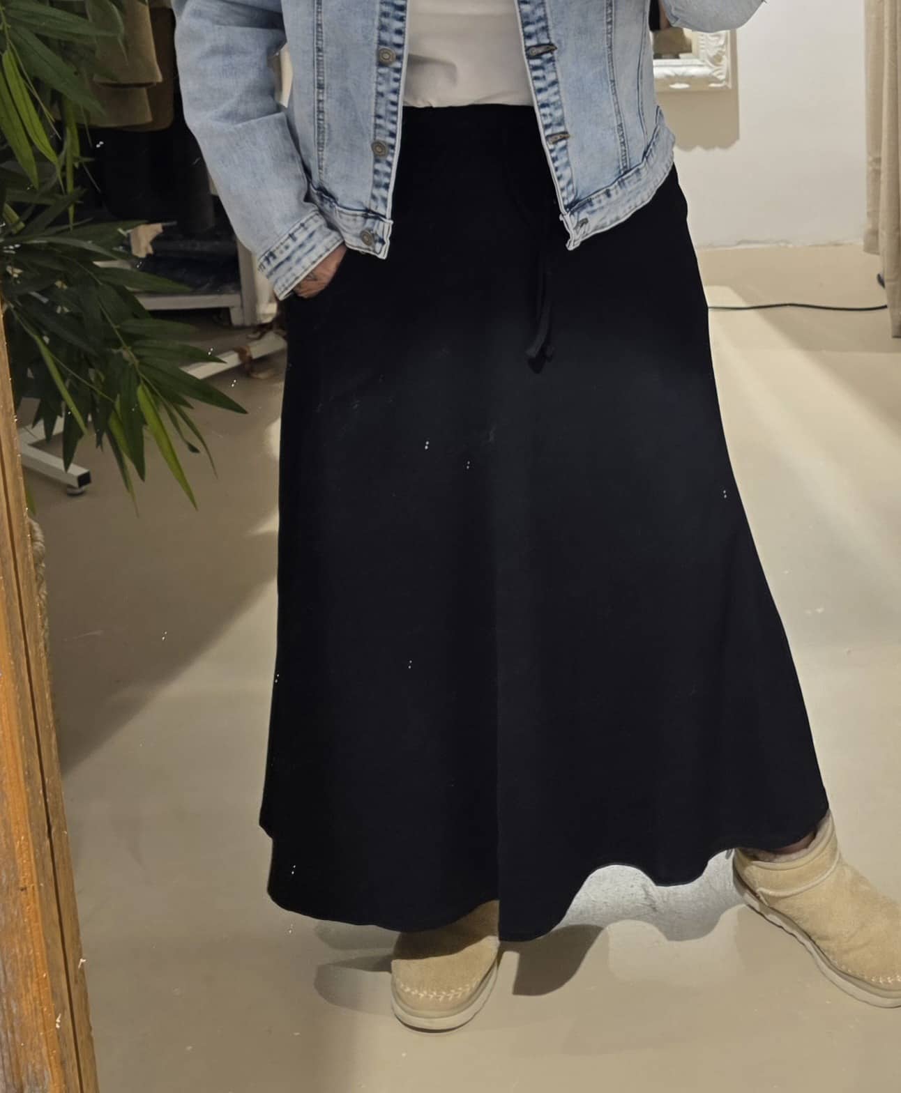 Heerlijke lange rok met elastische taille met koordje, de rok heeft zakken.