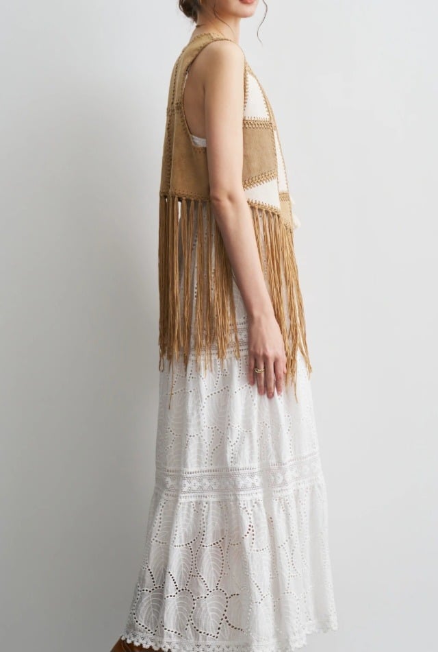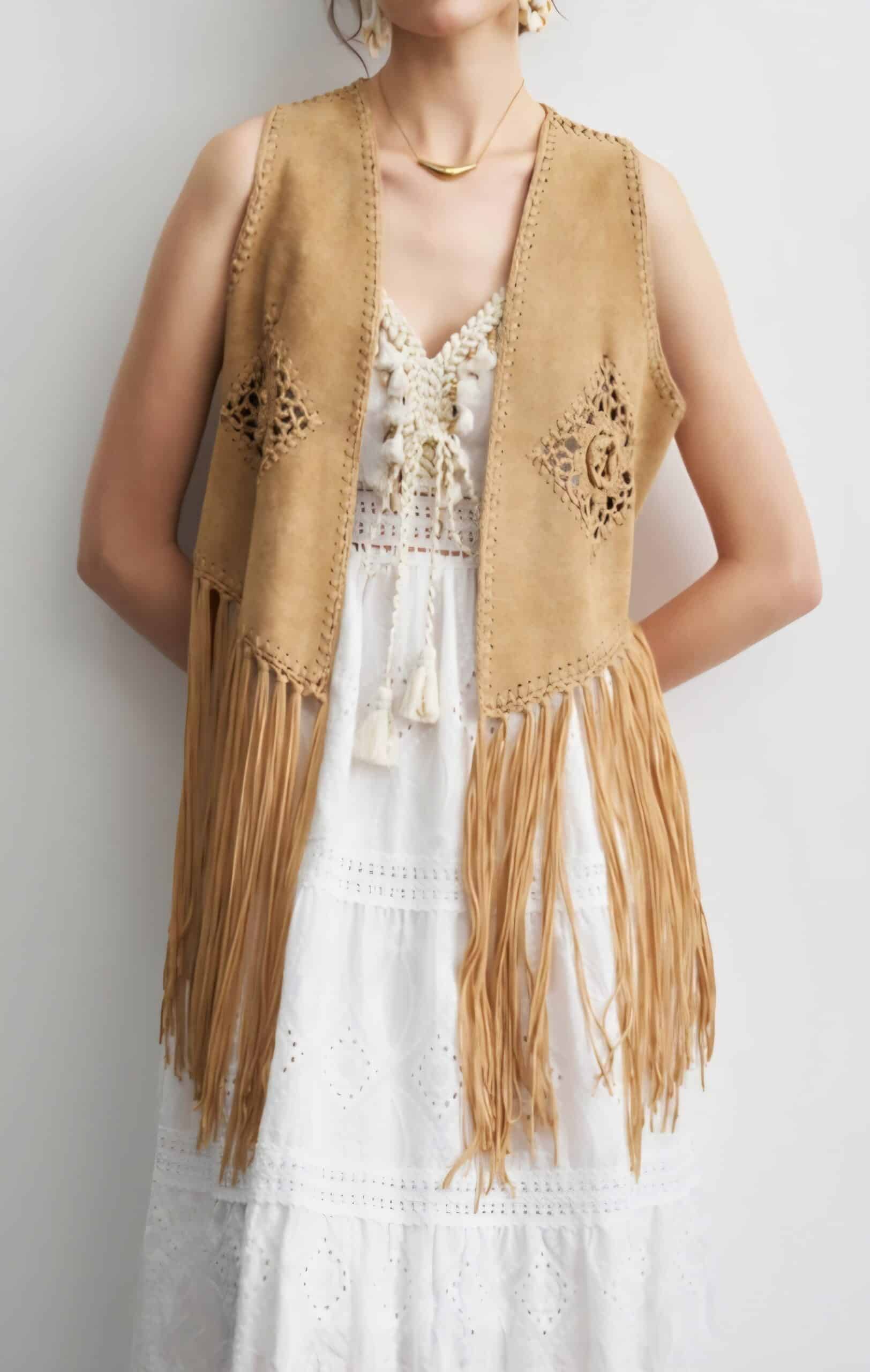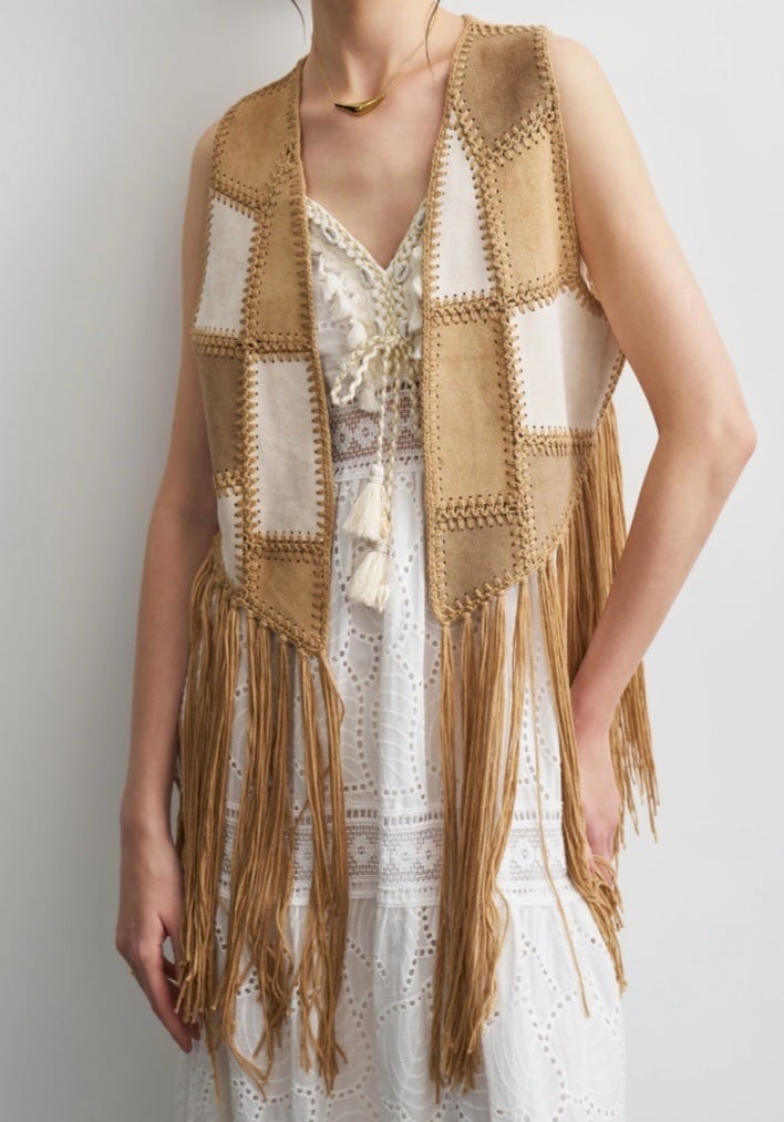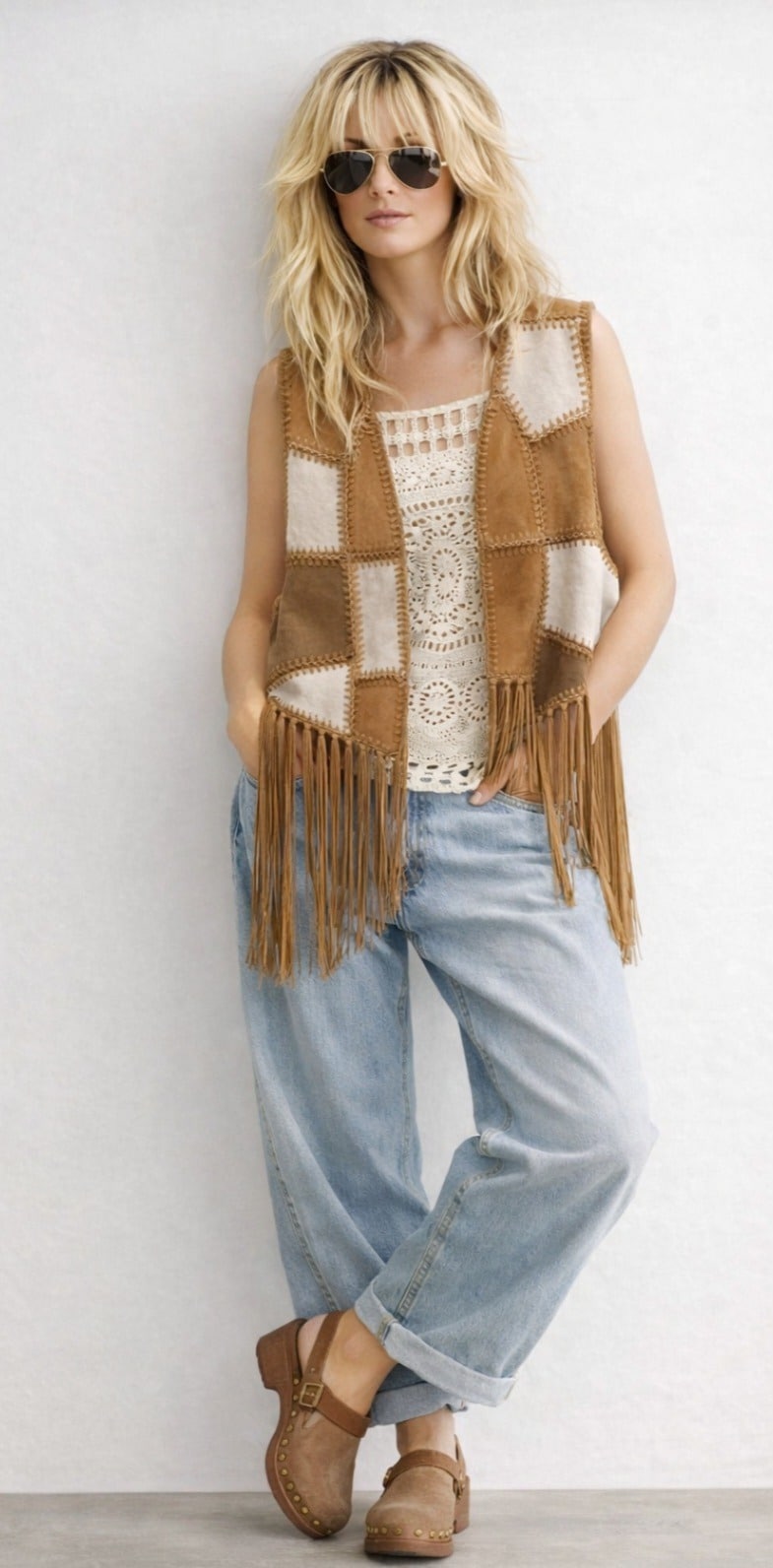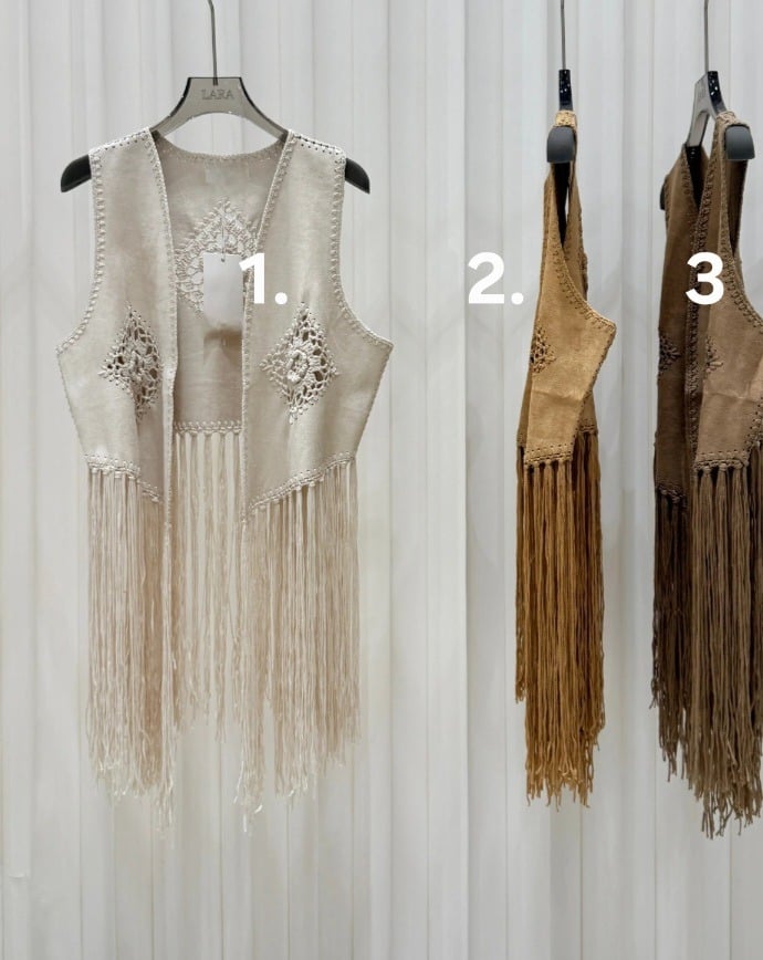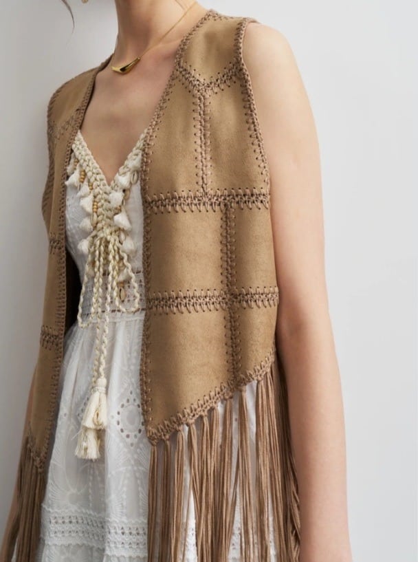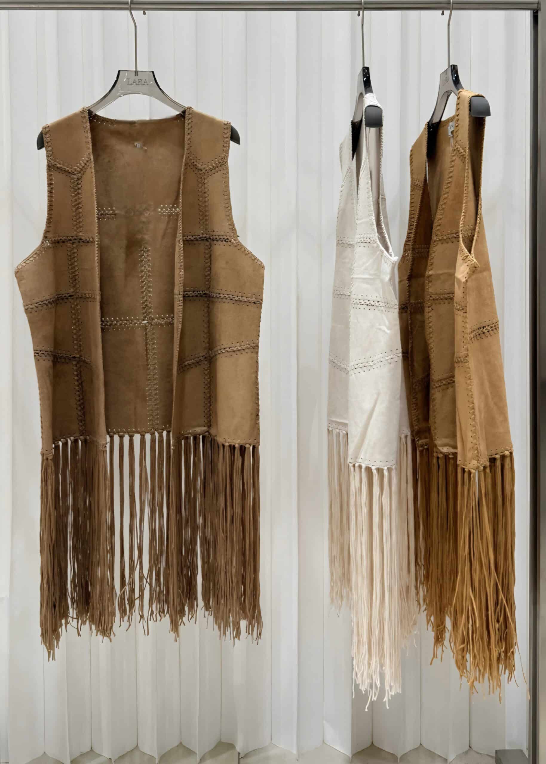 Dit geweldige gilet, maar nu in een kortere versie, één maat weer de lengte bij deze is 47 cm voor, 37 cm achter gemeten zonder franjes, materiaal is van polyester suèdine, leuk trendy gilet, onmisbaar in je garderobe, heerlijk boho vibe