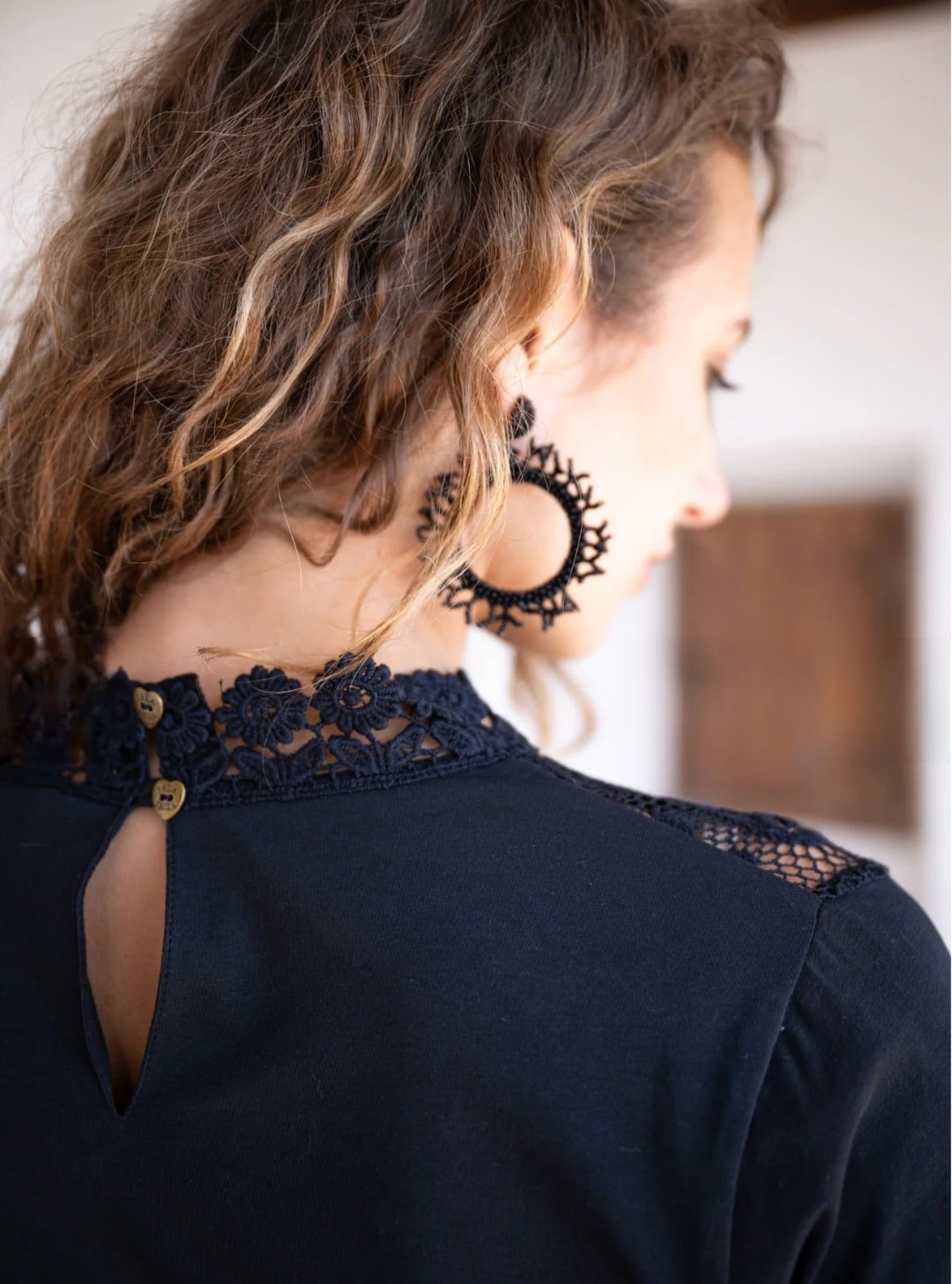 Mooi shirt afgewerkt met lace, 95% katoen, van het mooie merk Isla Ibiza, afgewerkt met mooie details