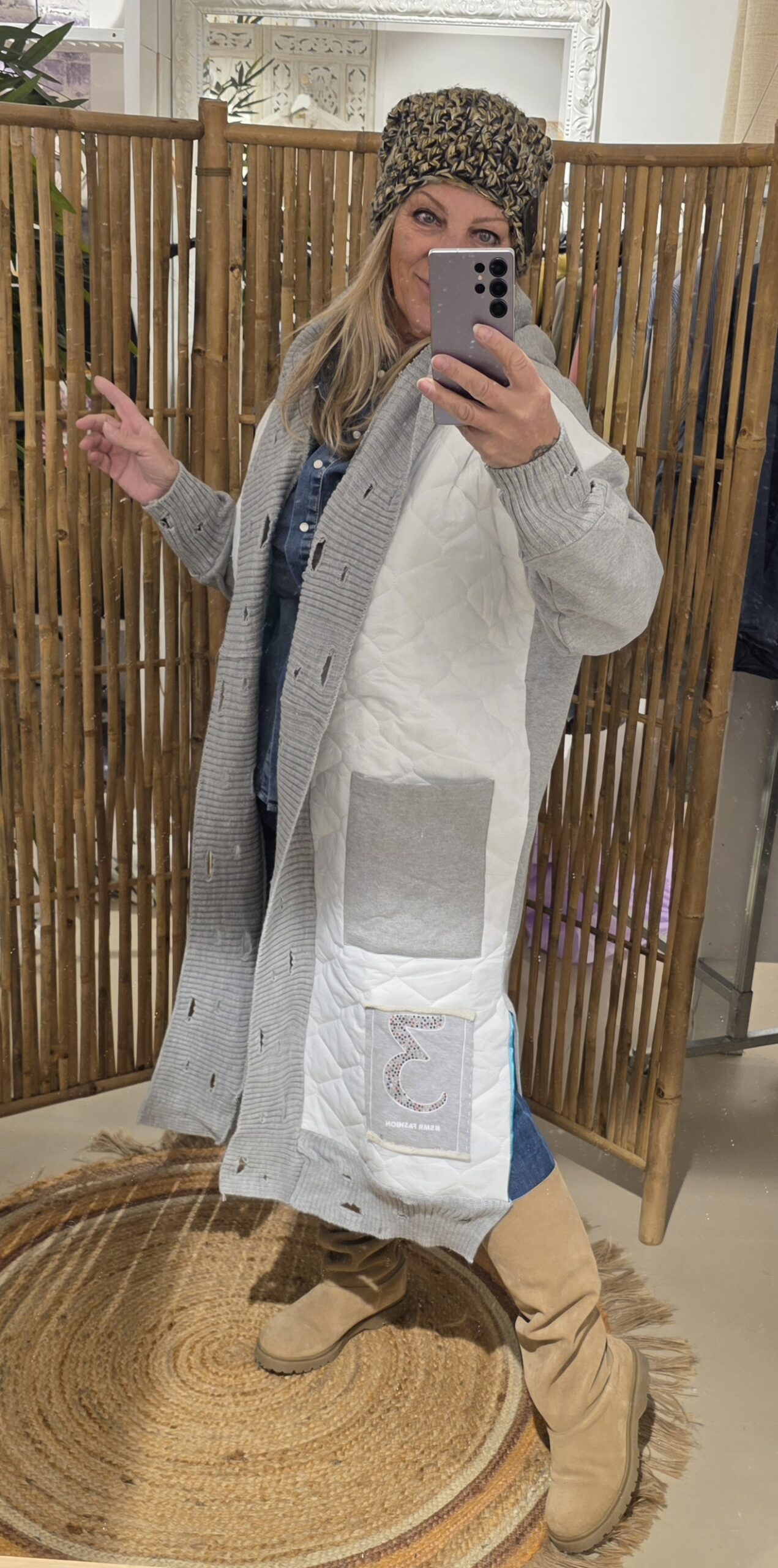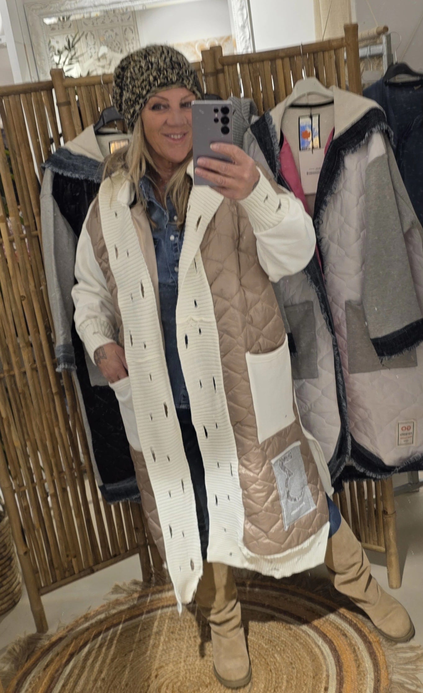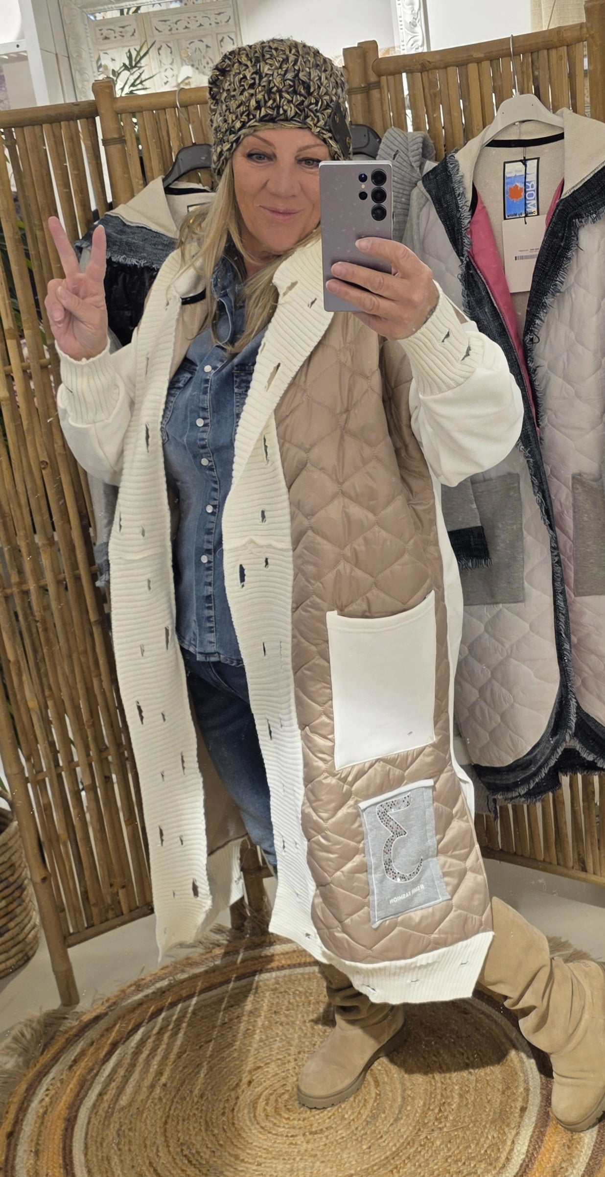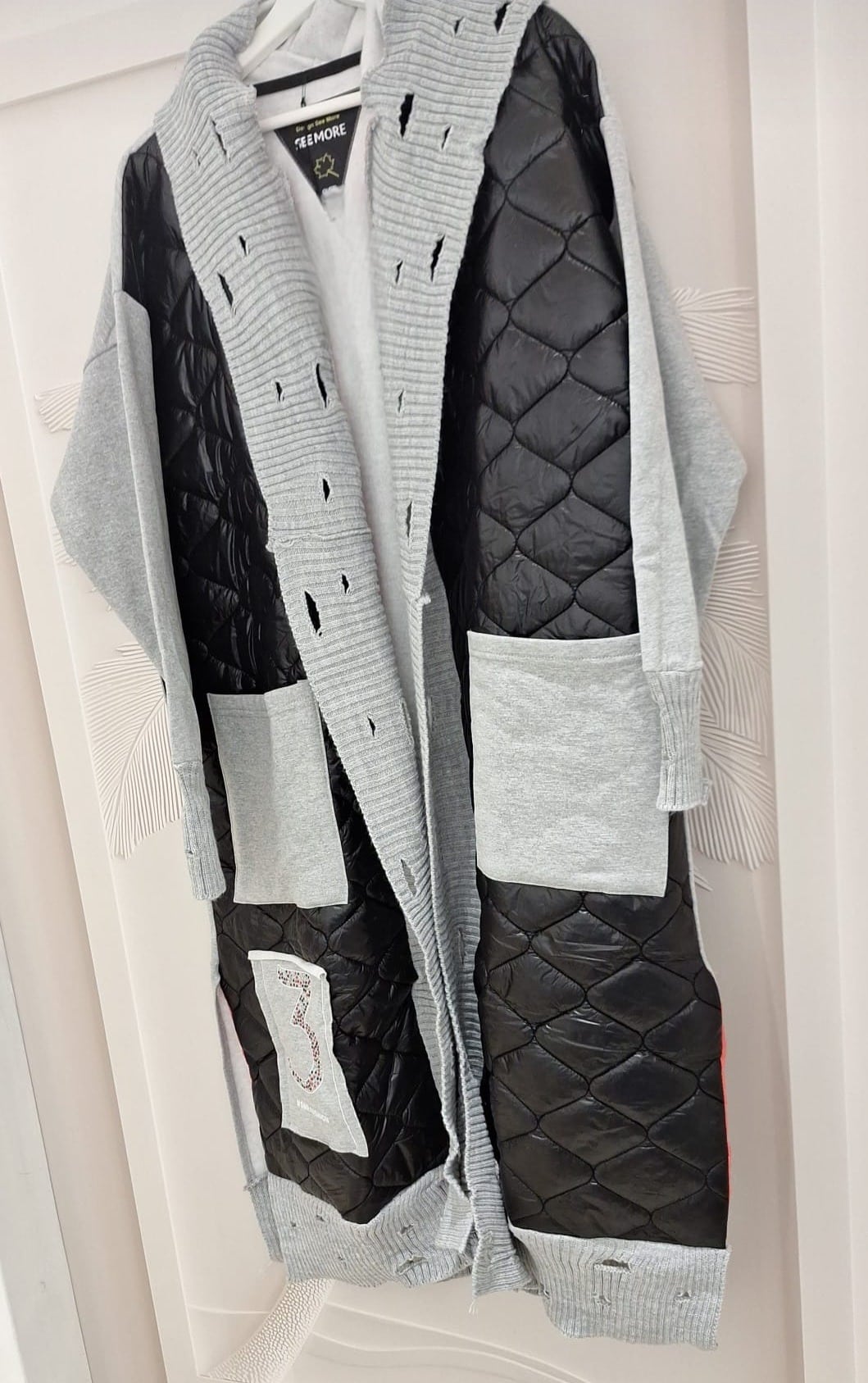 Zo stoer en trendy deze gave jas. Afgewerkt met diverse stofjes destressed details in de randen, met capuchon,  geen sluiting, je laat hem lekker oversized hangen, één maat valt ruim, klein strass detail op de jeans zak beneden aan de jas, zo uniek deze jassen.