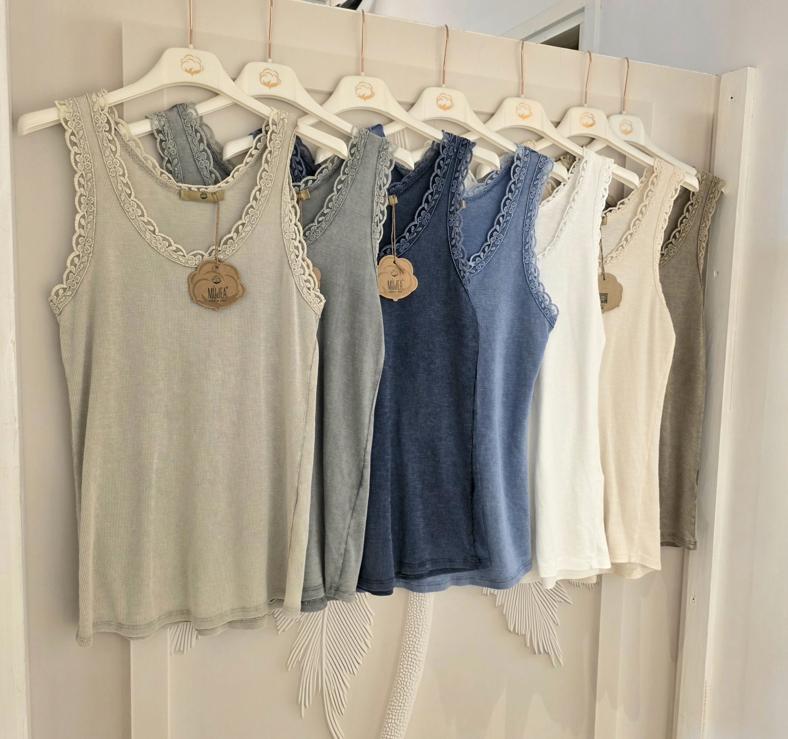 Van mooi materiaal deze katoenen tops met een leuk randje afgewerkt, één maat, past tot 44