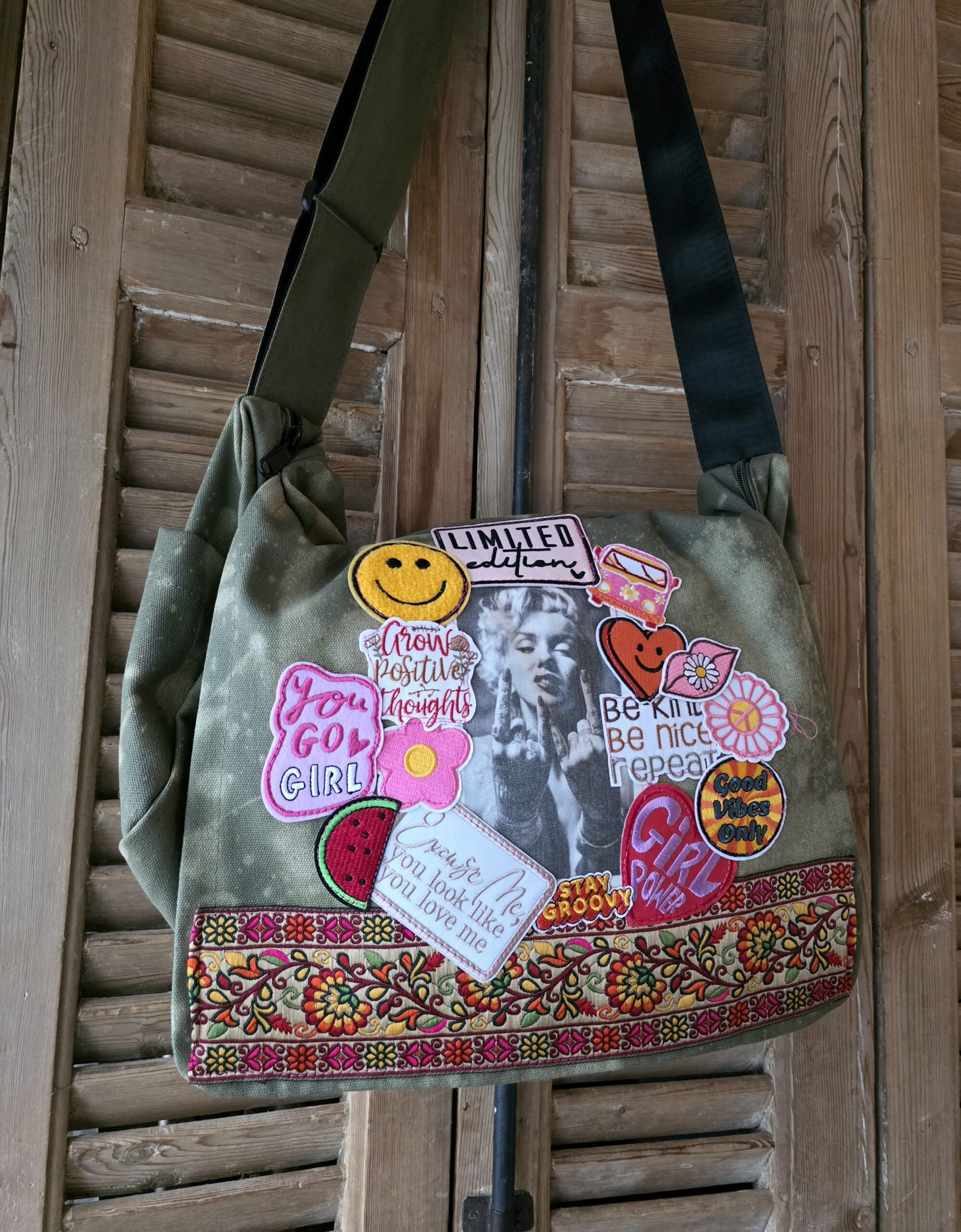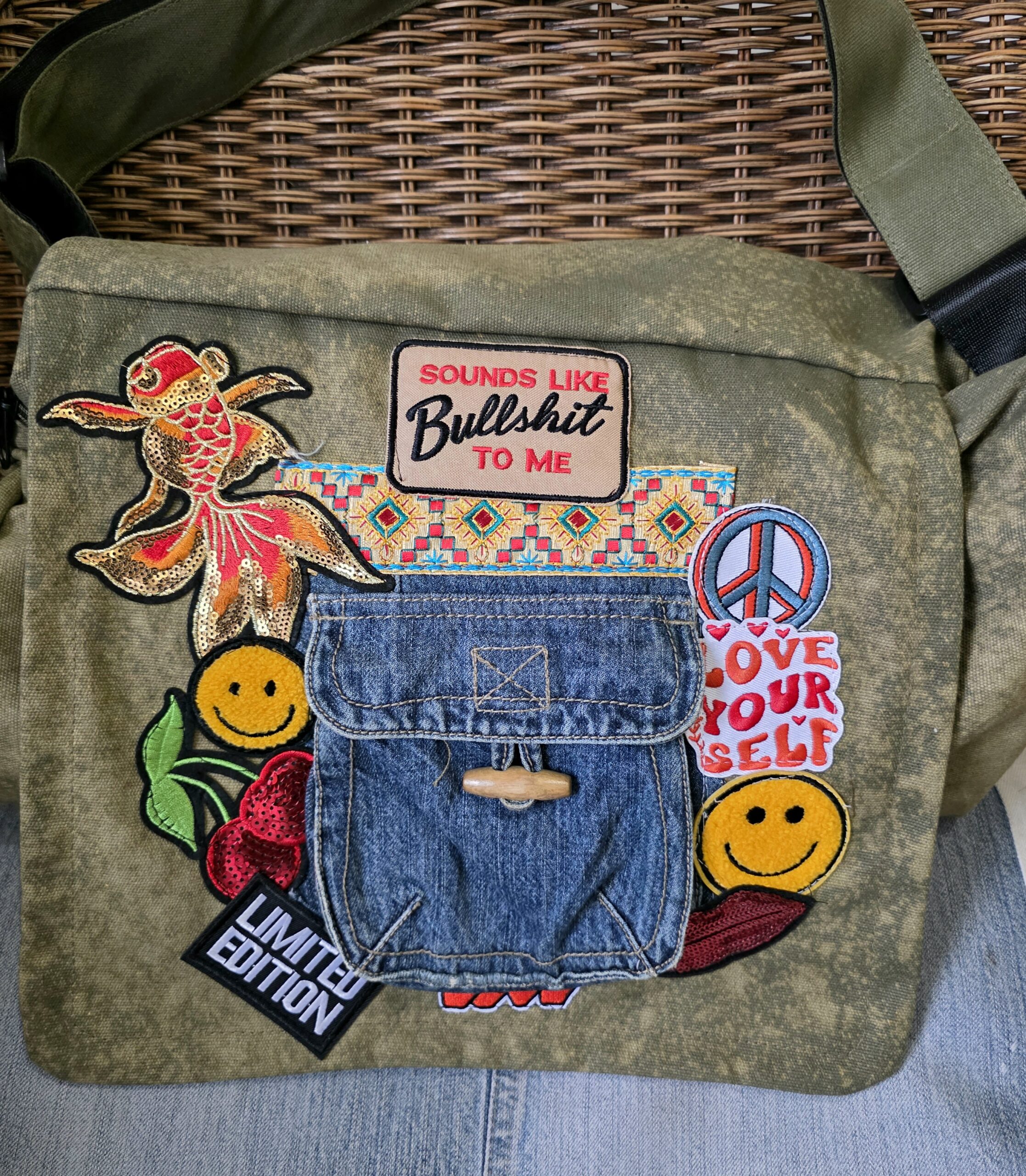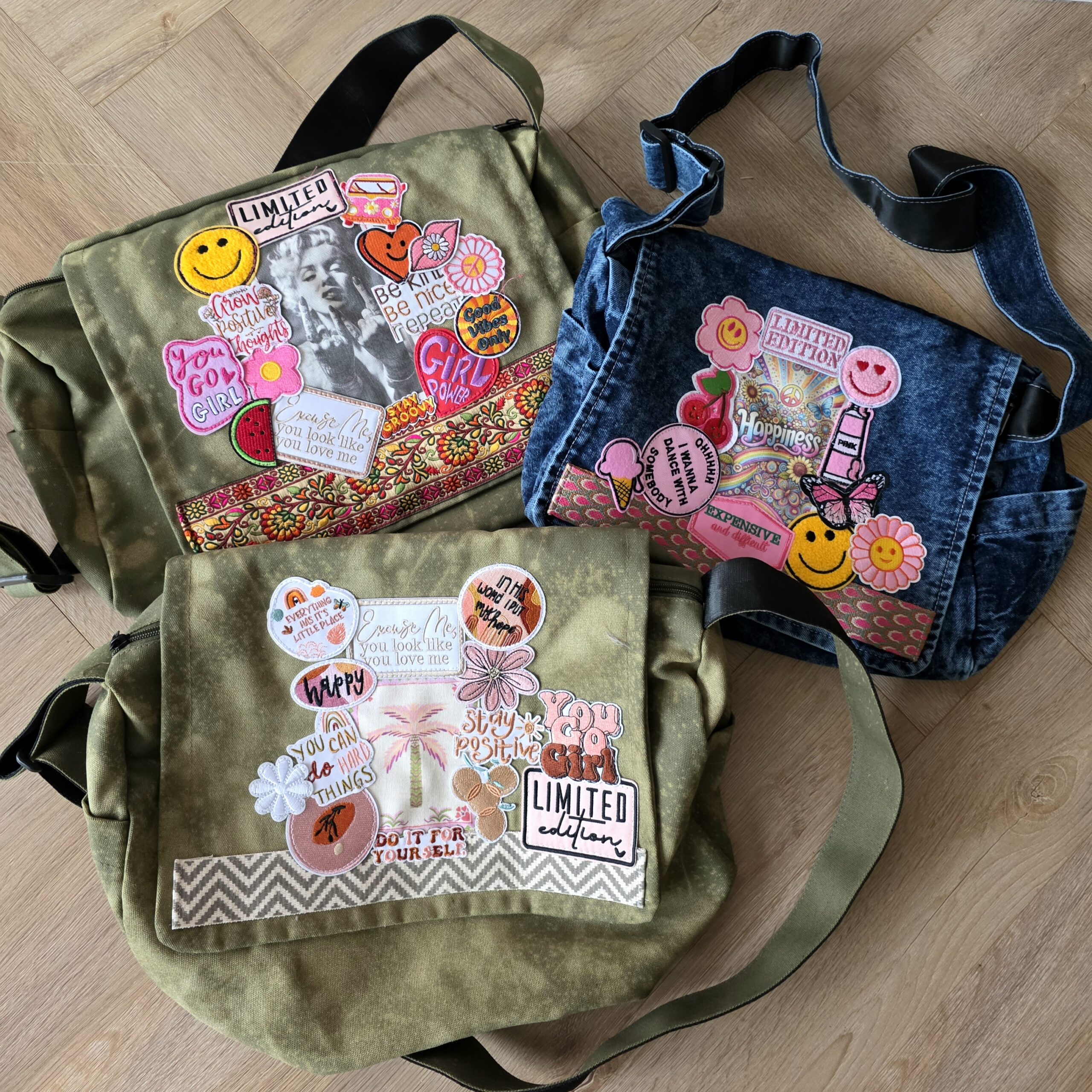 Handgemaakte pukkel bags, deze zijn allemaal uniek en handgemaakt, de tassen hebben een grote klep, met daaronder een rits, binnenin ook nog een extra vak én verstelbare bandjes, ongeveer 40 bij 30 cm , super stoer en echte eyecatchers.