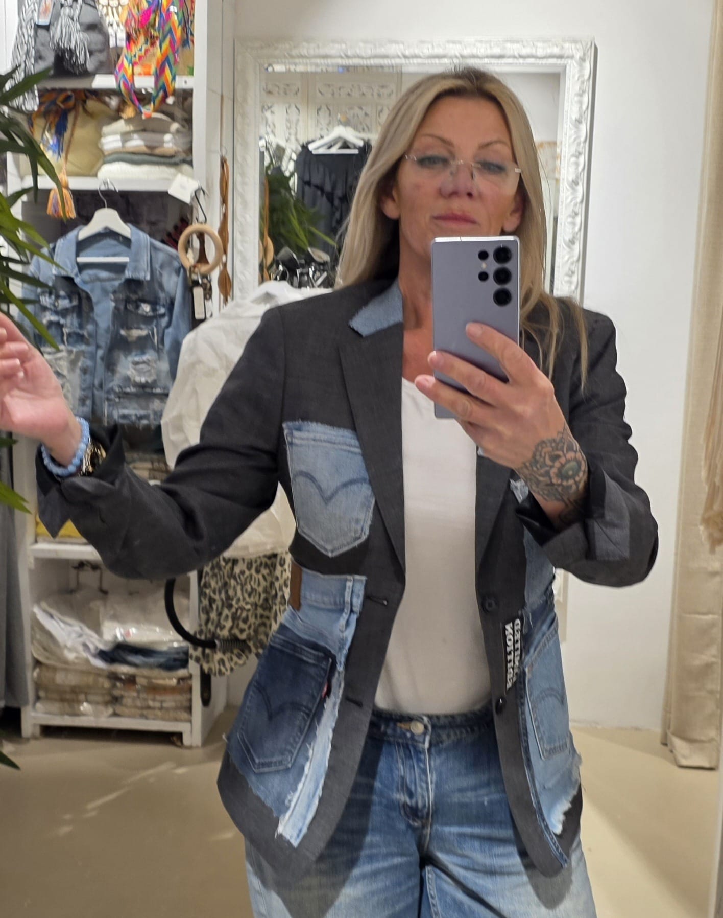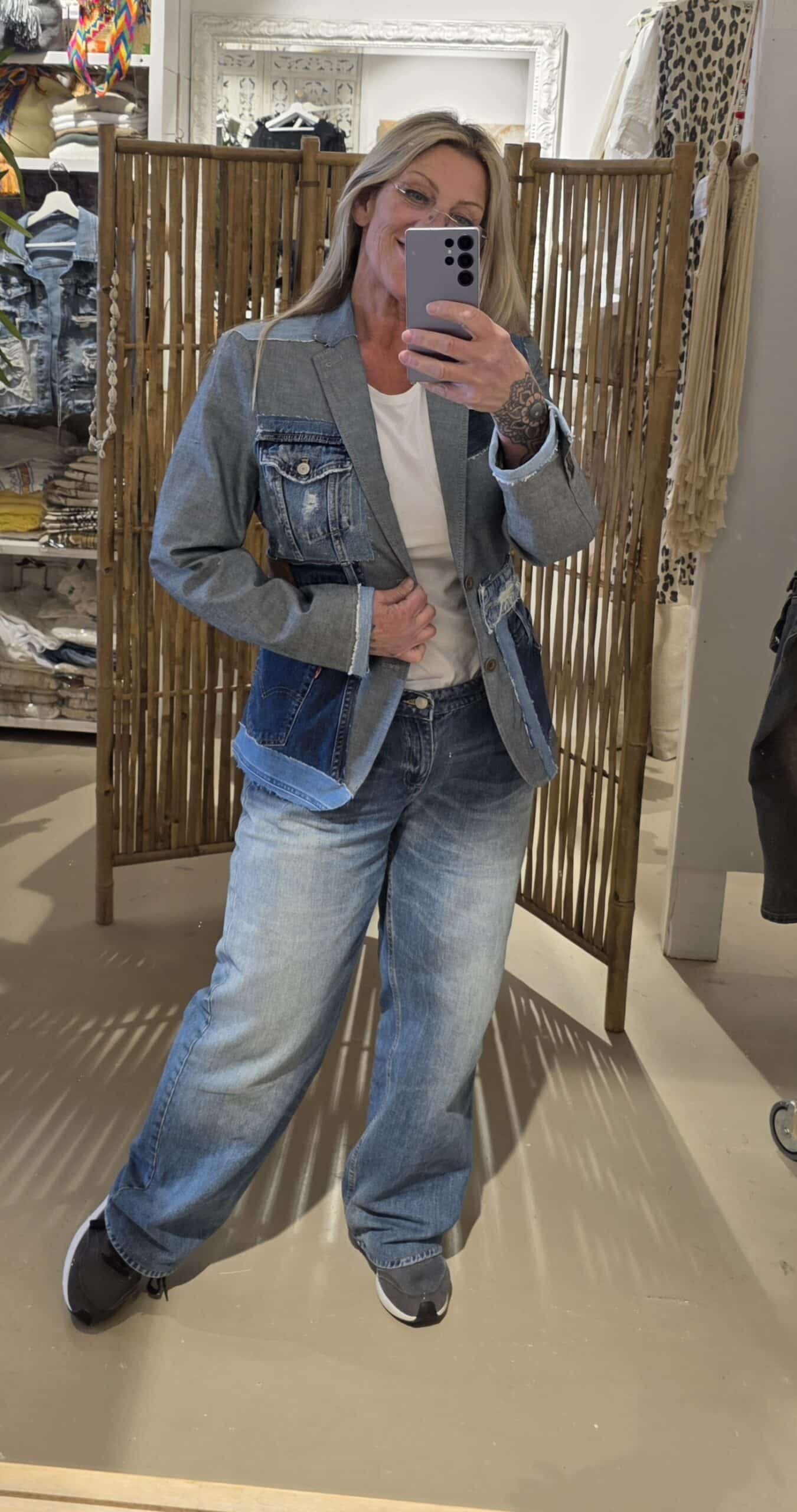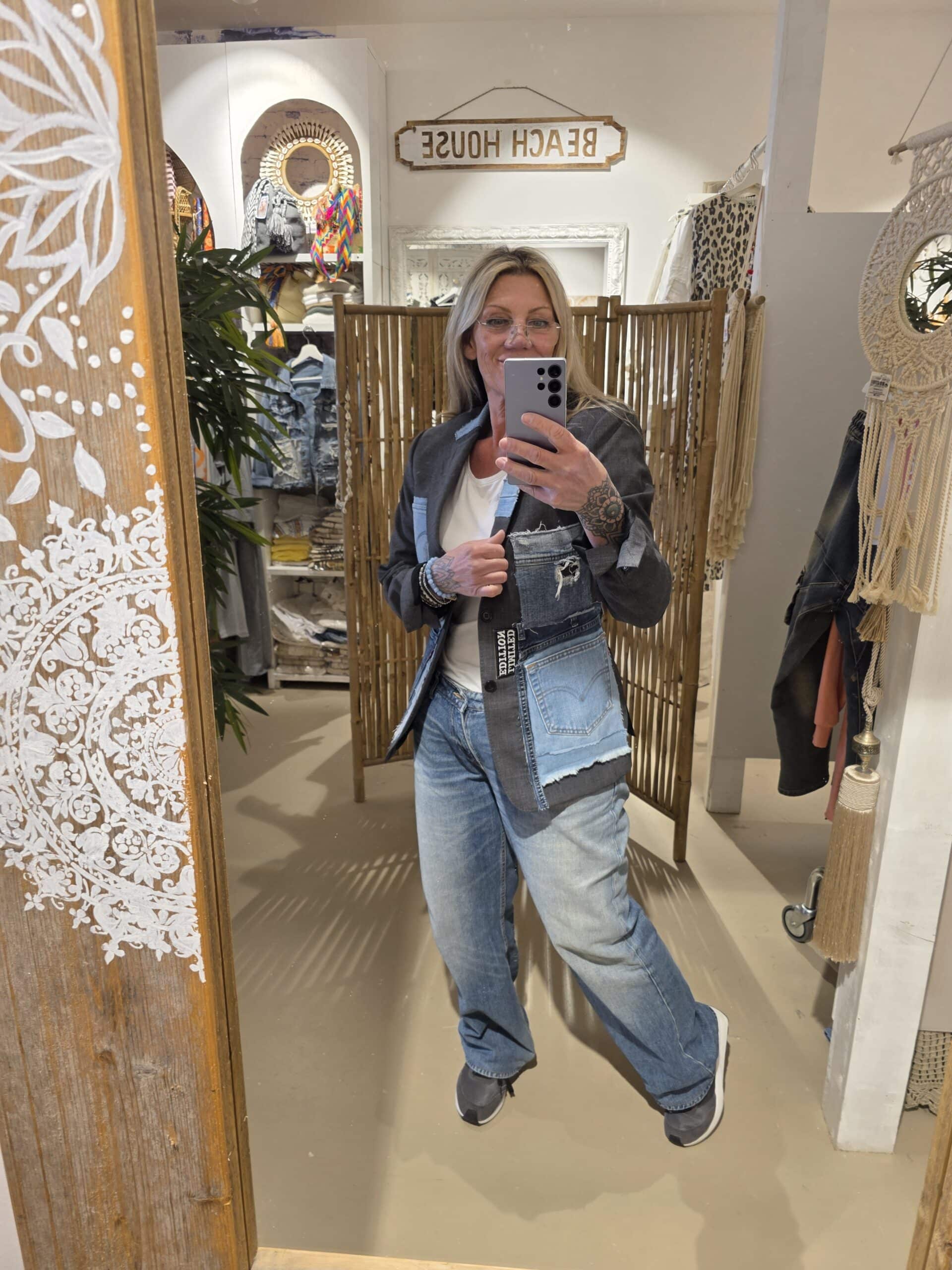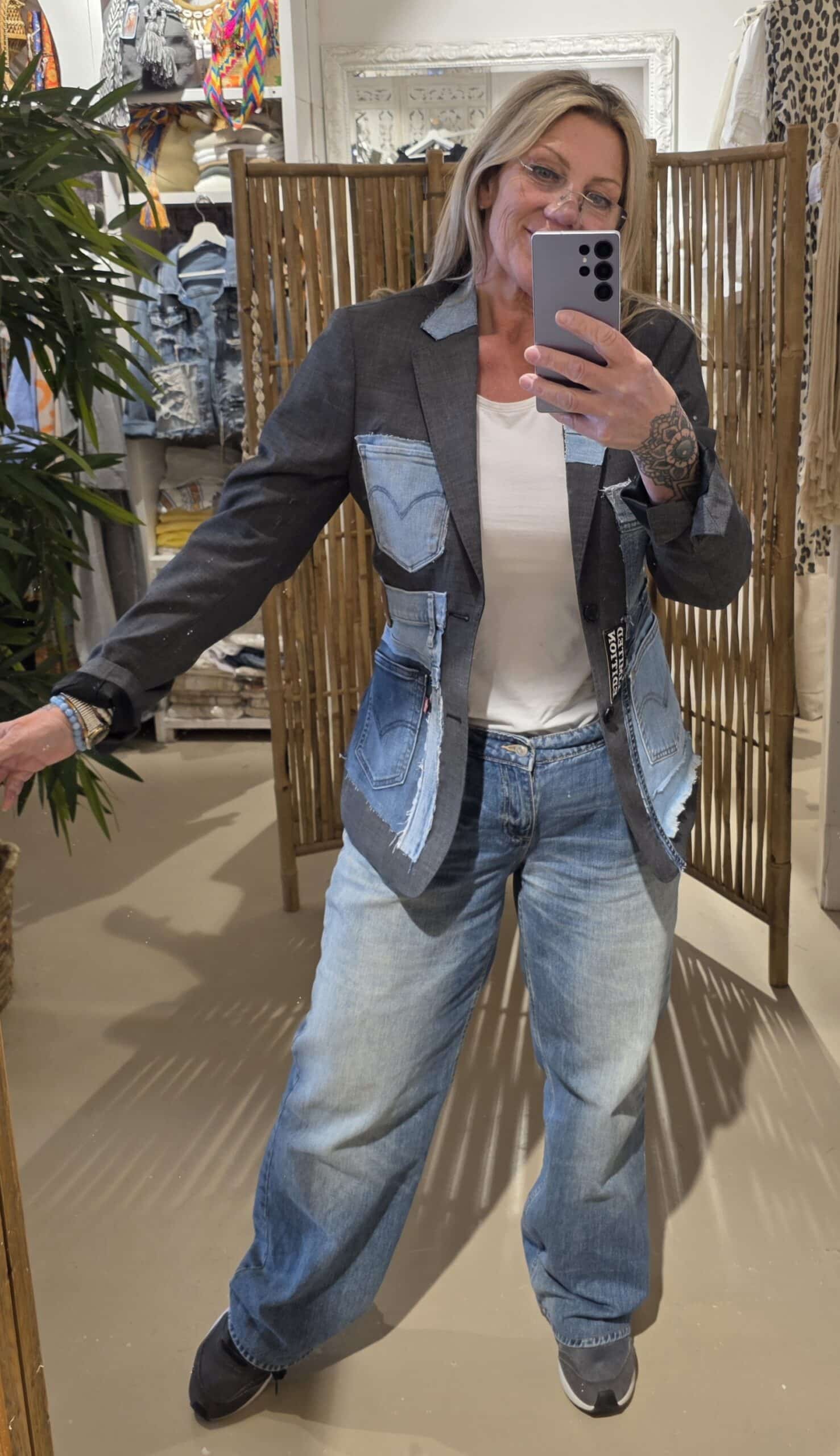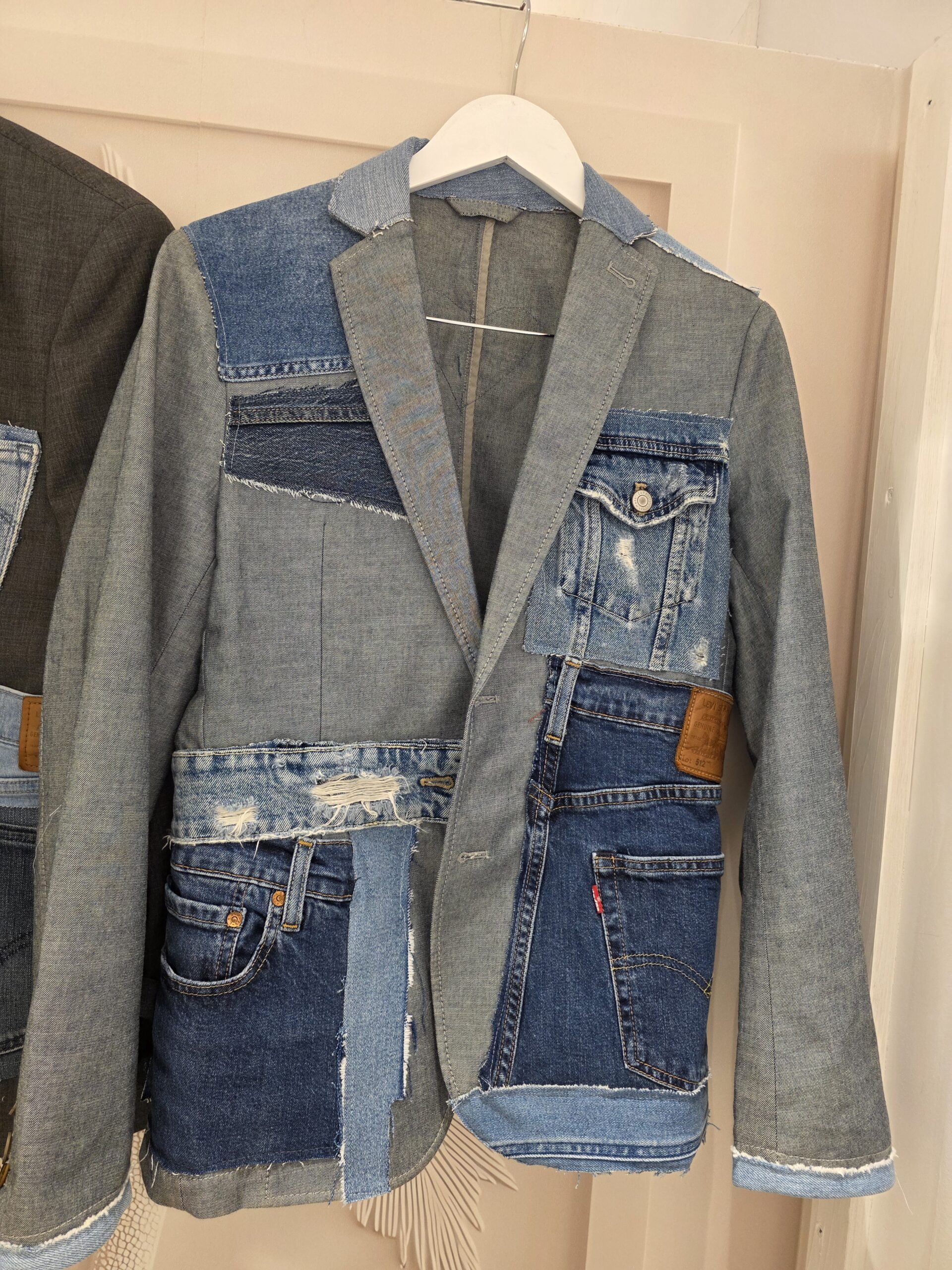 Deze bijzondere blazers zijn gemaakt van zorgvuldig geselecteerde vintage herenblazers en met de hand getransformeerd tot echte statement pieces. Elk jasje wordt verrijkt met originele Levi’s denim, verwerkt in unieke ontwerpen die zorgen voor een stoere, bohemian uitstraling.