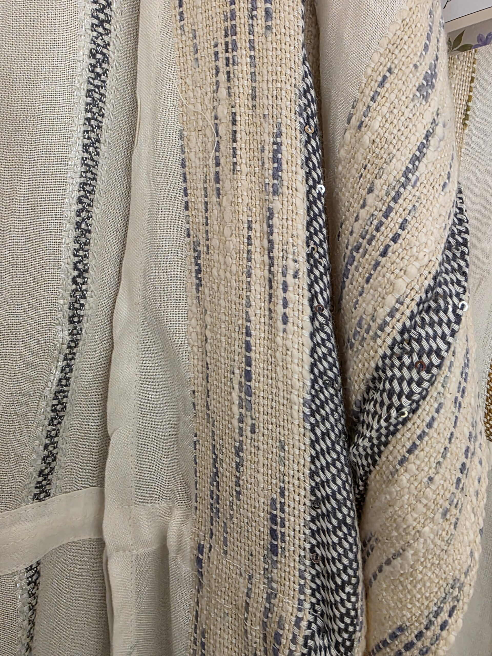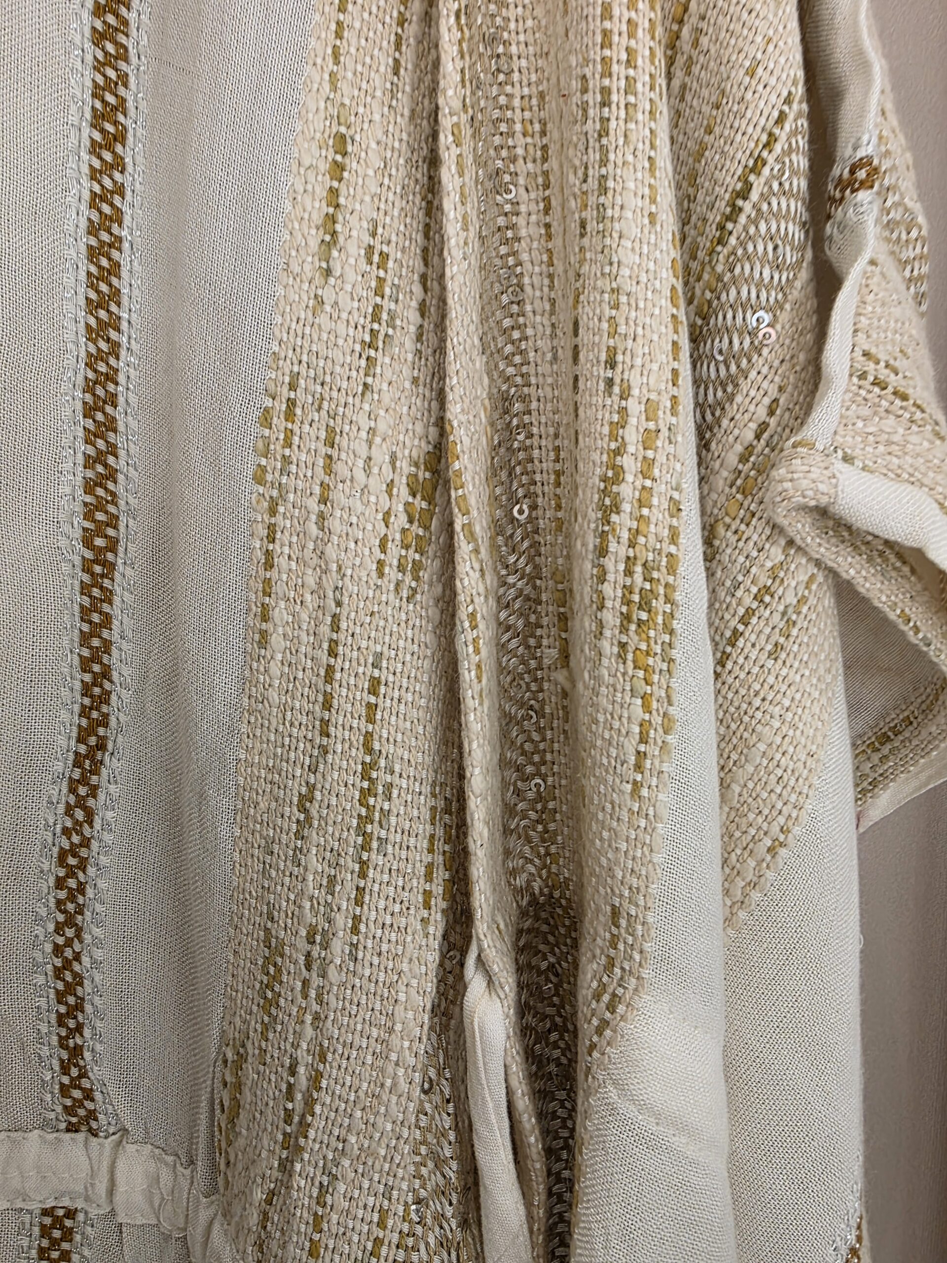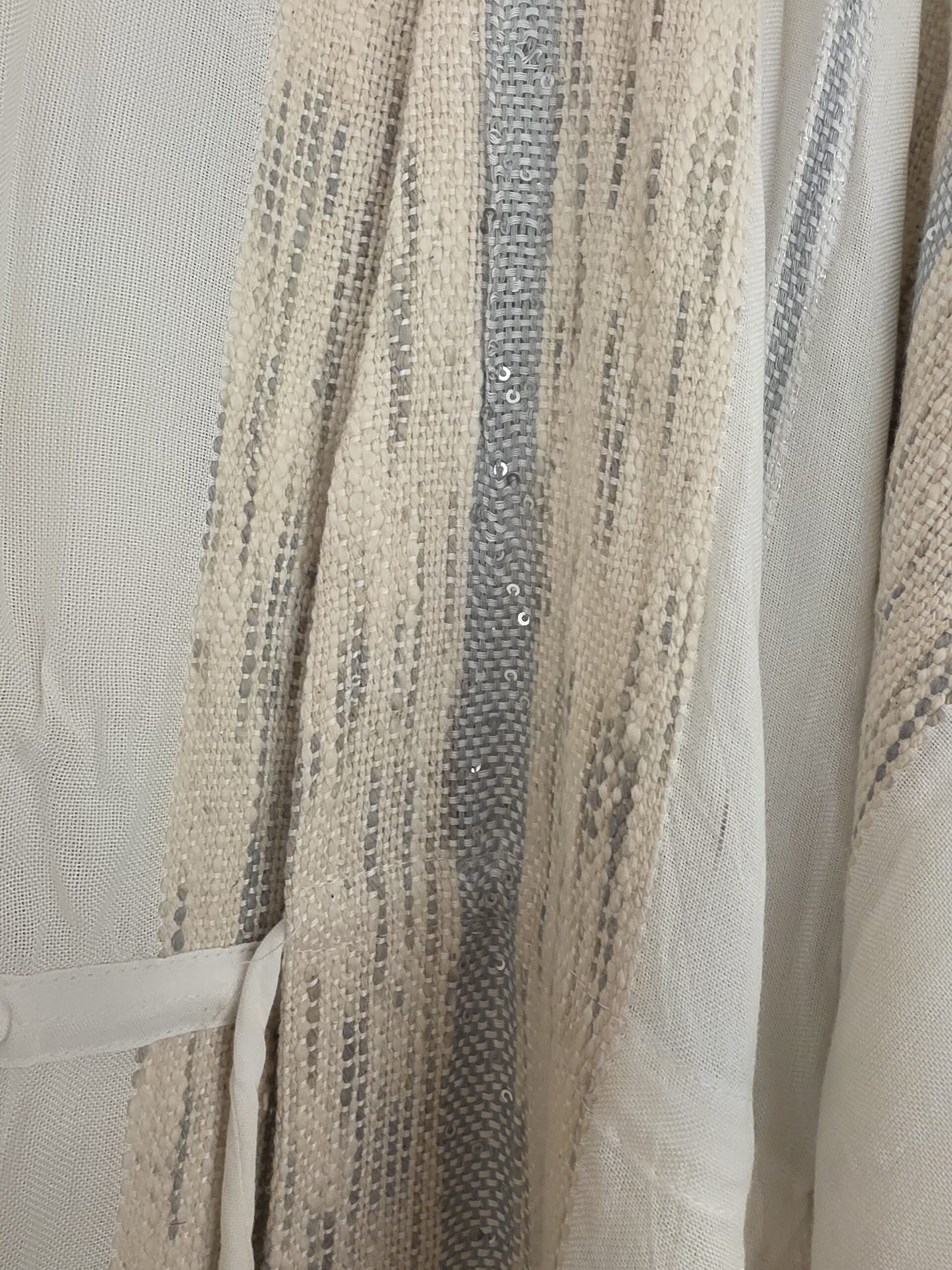 Prachtige kimono, met dubbele rand aan de zijkanten, mooi lang licht gestreept, koordje bij je middel, één maat past tot 42/44