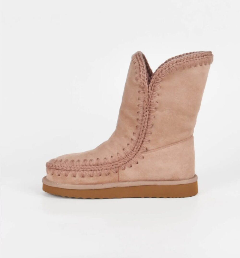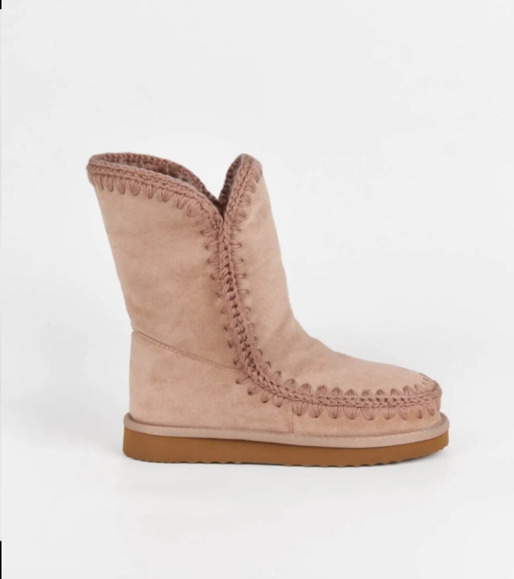 heerlijke zachte laarzen met rubber zool, gevoerd met bont, van een suadine, lookalikes M boots afgewerkt met leuk stiksel, kleur is een beetje licht cognac, zitten heerlijk, vallen gewoon op maat.