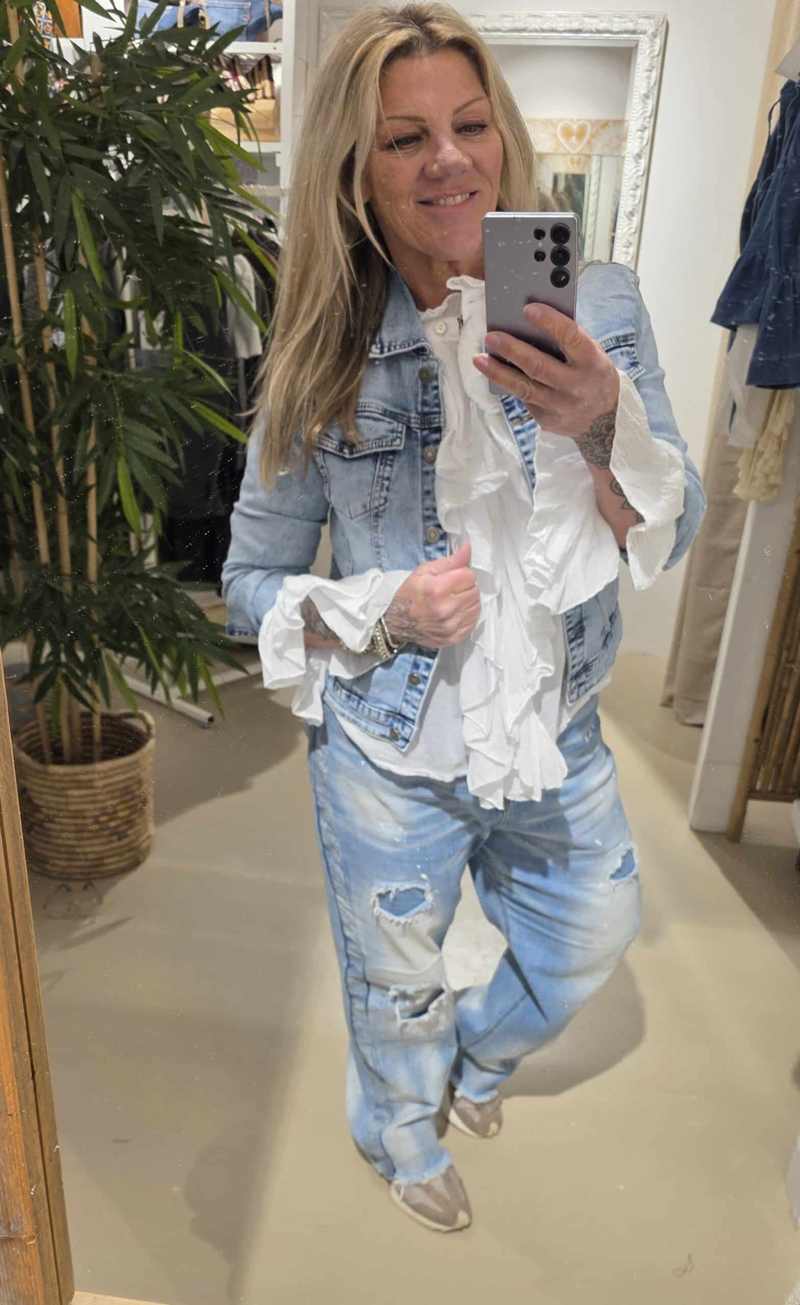Heerlijk stretch, licht getailleerd,  prachtige wassing, mooi stoer vrouwelijk denim jacket. Onmisbaar in je garderobe