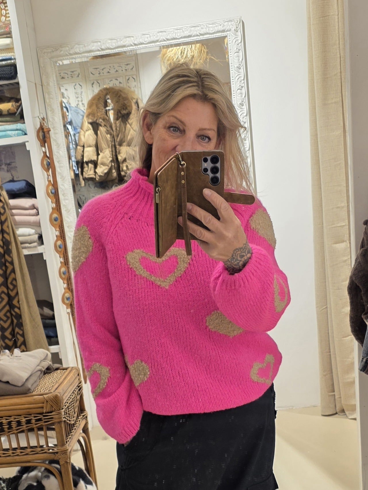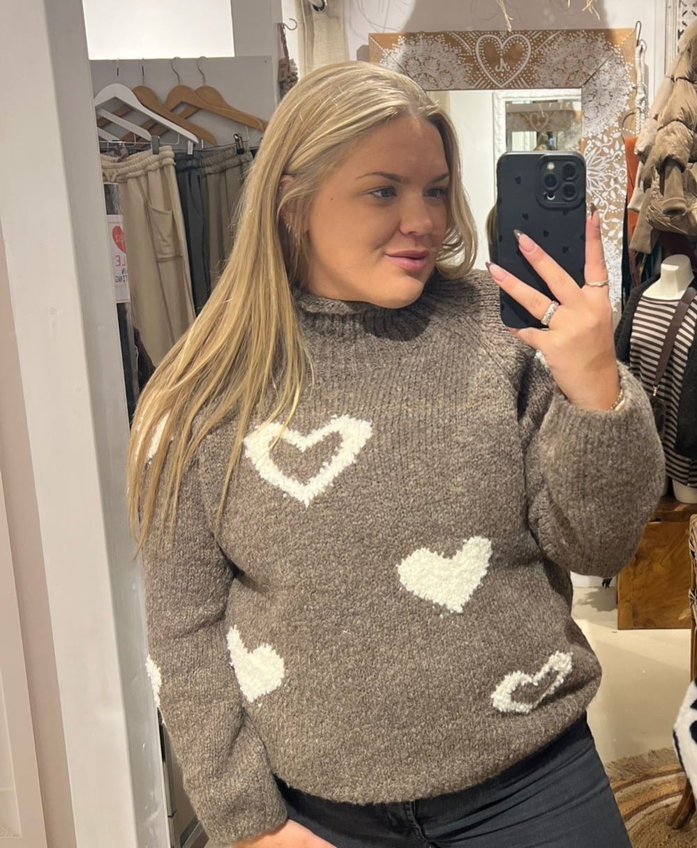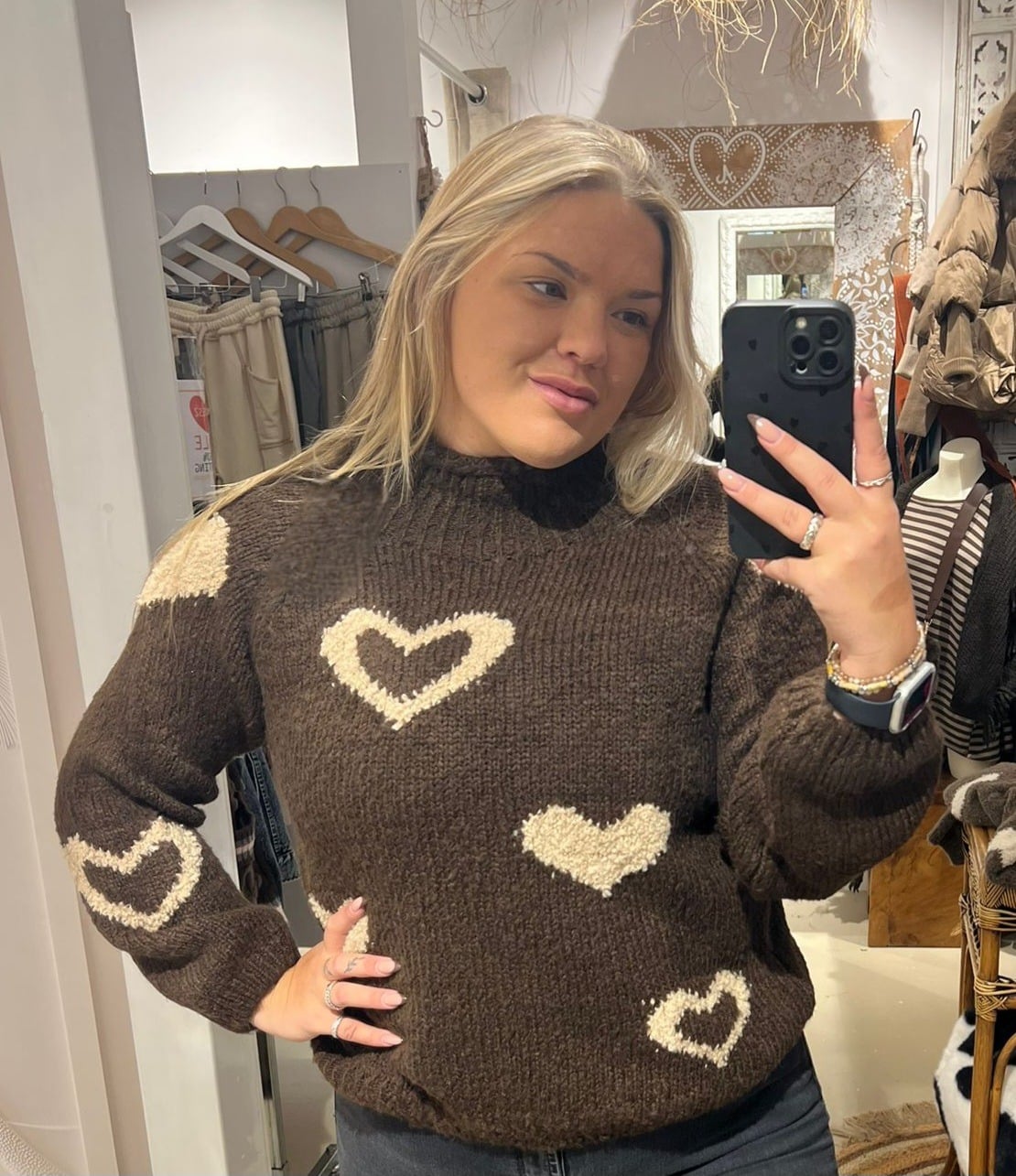 Leuke trui met opstaande boordje, acryl mix, één maat afgewerkt met vrolijke hartjes, lekker warm én trendy