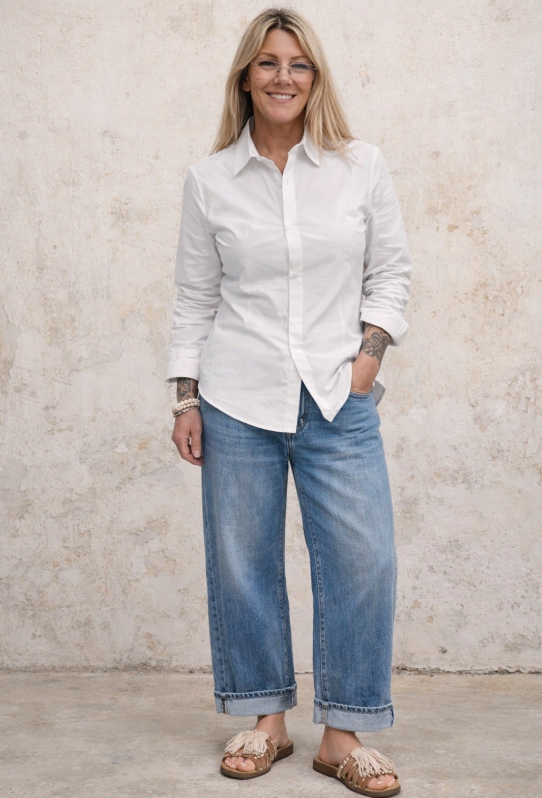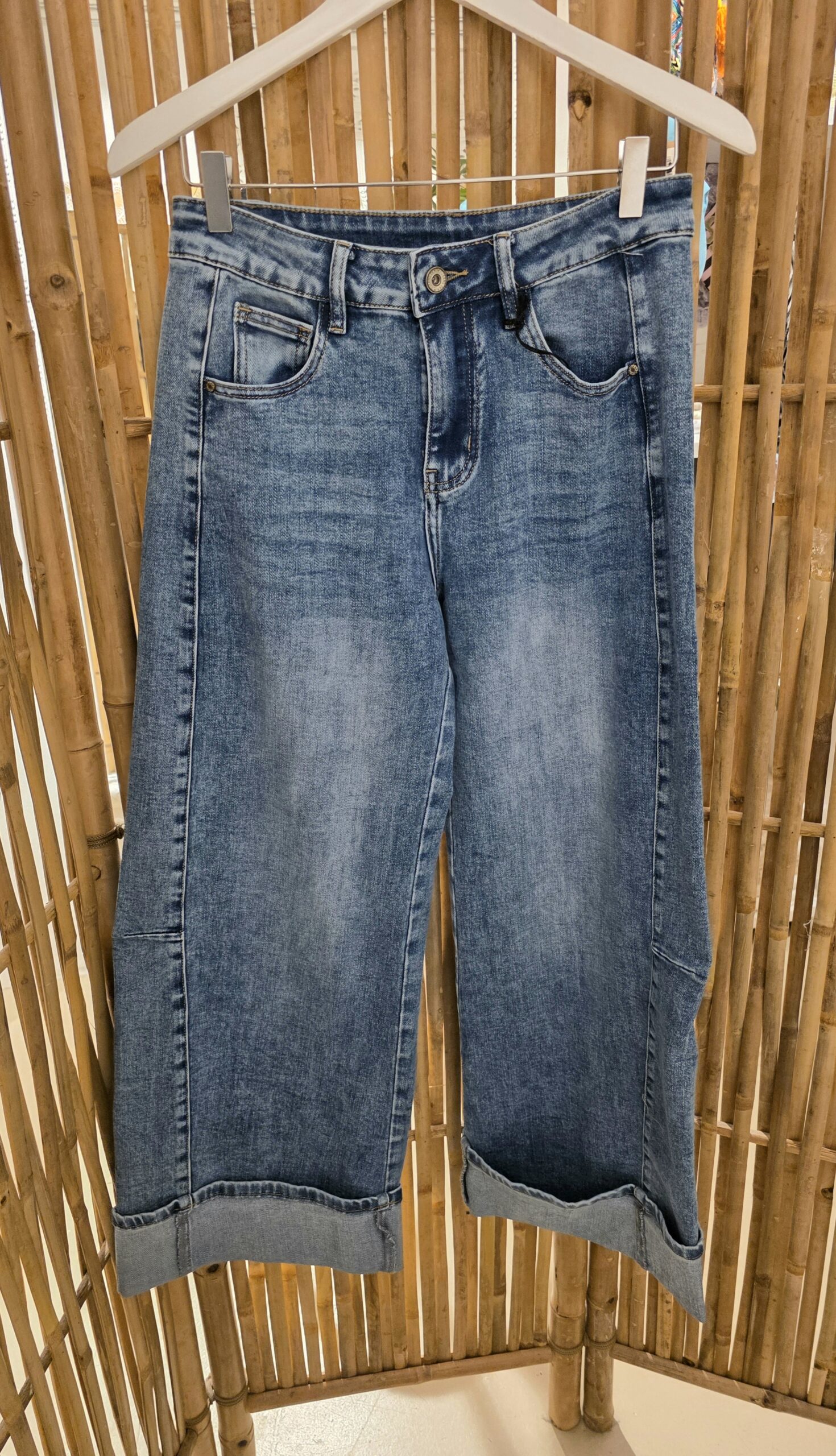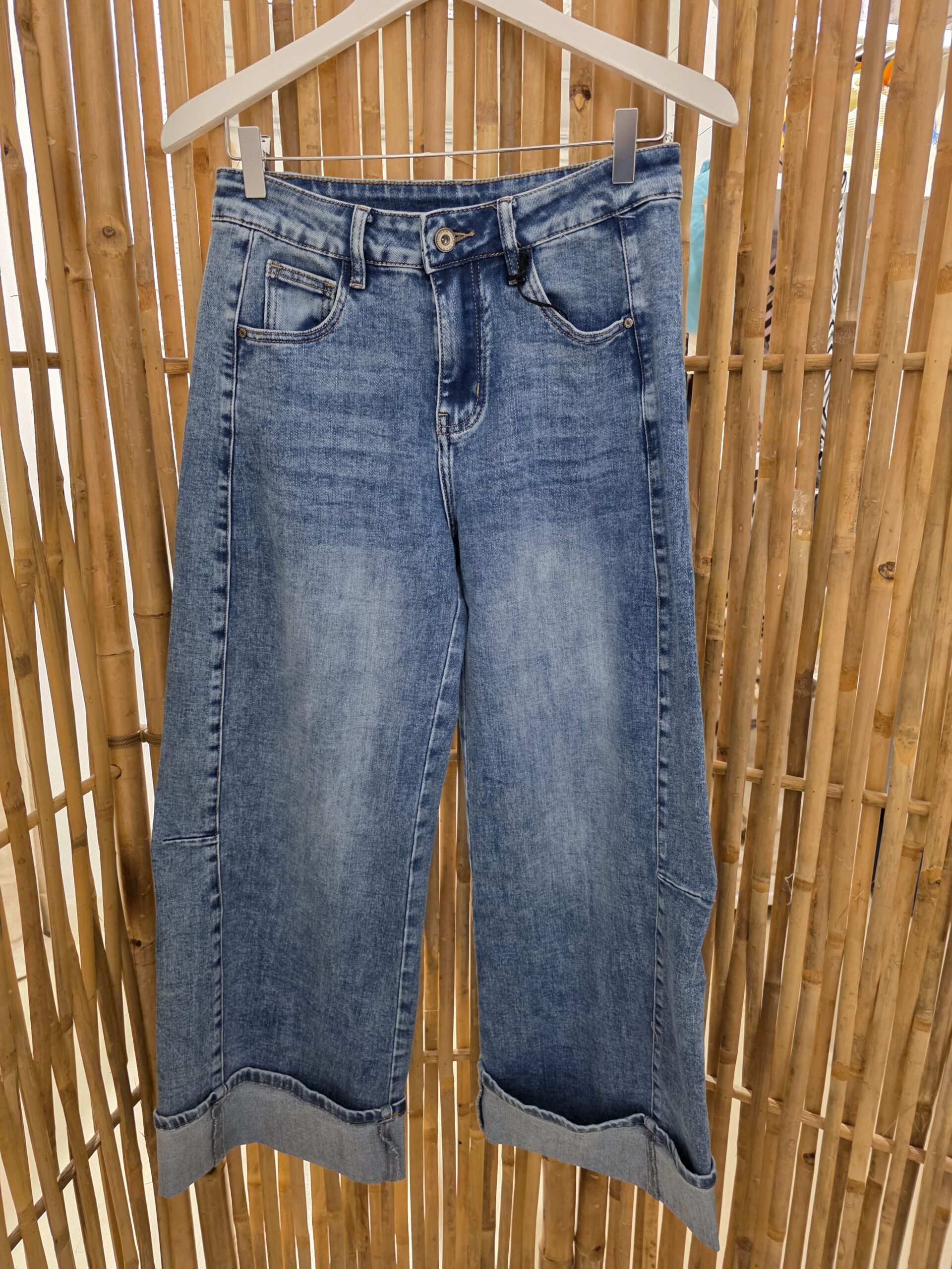 Heerlijke stretch jeans met mooie stone wassing, wijde pijpen, omslag kan naar beneden, stretch taille, s tot xl, xl past tot 44